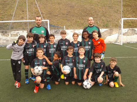 Futbol eskolako neska mutilek ipuruan jolastu dute igandean.